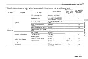 The setting adjustments to the following items can be manually changed to meet your personal requirements . | ||||||