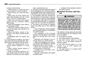 . The light control switch is in the “ AUTO ”, “ ” or “ ” position ( except for Canada models ).