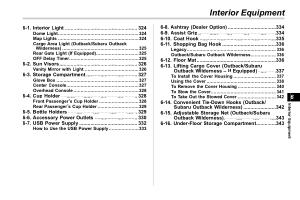 6-14 . Convenient Tie-Down Hooks ( Outback / Subaru Outback Wilderness ) ....................... 342