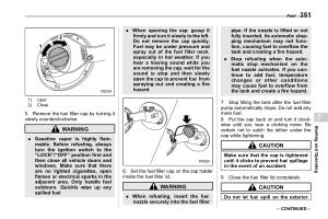 . Gasoline vapor is highly flammable . Before refueling , always turn the ignition switch to the “ LOCK ”/“ OFF ” position first and then close all vehicle doors and windows . Make sure that there are no lighted cigarettes , open flames or electrical sparks in the adjacent area . Only handle fuel outdoors . Quickly wipe up any spilled fuel .
