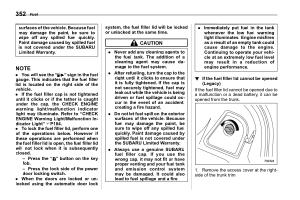 . Do not let fuel spill on the exterior surfaces of the vehicle . Because fuel may damage the paint , be sure to wipe off any spilled fuel quickly . Paint damage caused by spilled fuel is not covered under the SUBARU Limited Warranty .
