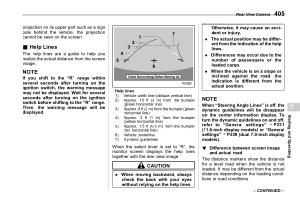 When the select lever is set to “ R ”, the monitor screen displays the help lines together with the rear view image .
