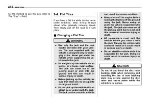 . Always turn off the engine before raising the flat tire off the ground using the jack . Never swing or push the vehicle supported with the jack . The jack can come out of the jacking point due to a jolt and this can result in serious injury or death .