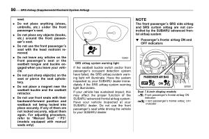 If the seatbelt buckle switch and / or front passenger ’ s occupant detection system have failed , the SRS airbag system warning light will illuminate . Have the system inspected by your SUBARU dealer immediately if the SRS airbag system warning light illuminates .