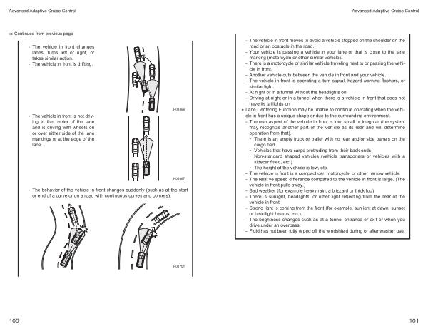 - The behavior of the vehicle in front changes suddenly ( such as at the start or end of a curve or on a road with continuous curves and corners ).