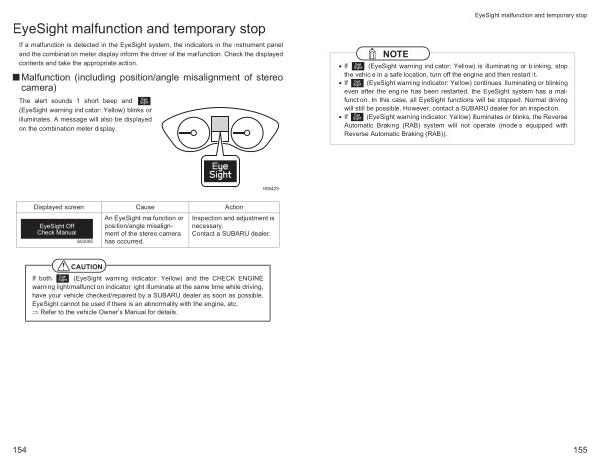 EyeSight malfunction and temporary stop