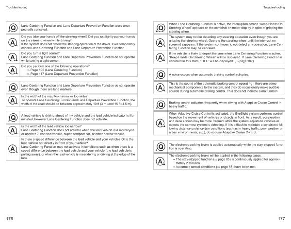 When Adaptive Cruise Control is activated , the EyeSight system performs control based on the movement of vehicles or objects in front . As a result , acceleration and deceleration may be more frequent while the system adjusts to vehicles or objects the camera system is detecting . If it is difficult to maintain a consistent following distance under certain conditions ( such as in heavy traffic , poor weather or urban environments , etc .), do not use Adaptive Cruise Control .