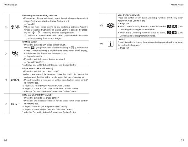 Lane Centering switch Press this switch to turn Lane Centering Function on / off ( only when Adaptive Cruise Control is on ).