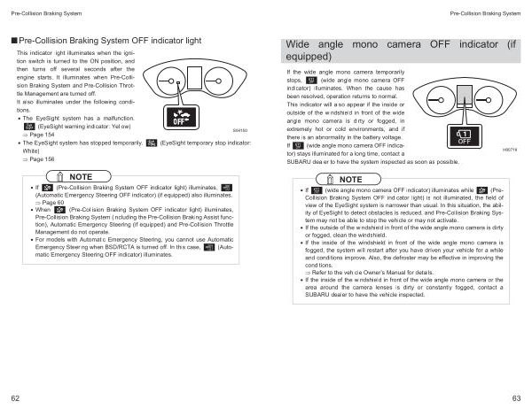 • The EyeSight system has stopped temporarily . ( EyeSight temporary stop indicator : White )
