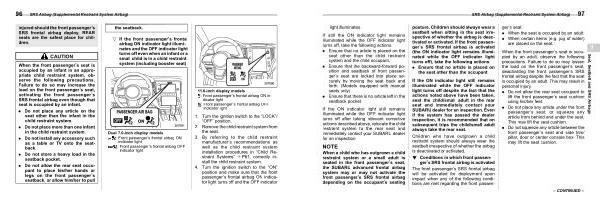 ! If the front passenger ’ s frontal airbag ON indicator light illuminates and the OFF indicator light turns off even when an infant or a small child is in a child restraint system ( including booster seat ) s01ah020401