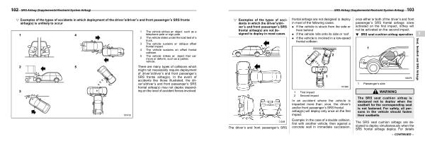 ! Examples of the types of accidents in which the driver ’ s / driver ’ s and front passenger ’ s SRS frontal airbag ( s ) are not designed to deploy in most cases s01ah021104 |