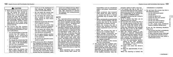 . If an access key fob is lost , it is recommended that all of the remaining access key fobs be reregistered . For reregistration of an access key fob , contact a SUBARU dealer .