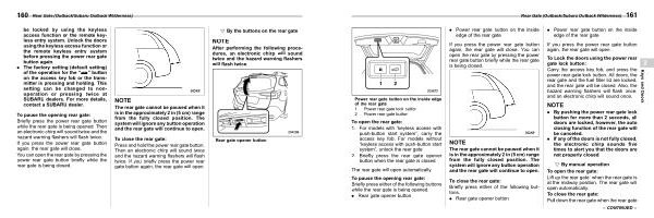 . The factory setting ( default setting ) of the operation for the “ ” button on the access key fob or the transmitter is pressing and holding . This setting can be changed to nonoperation or pressing twice at SUBARU dealers . For more details , contact a SUBARU dealer .