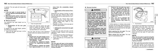 . Register the rear gate height to turn on the “ Power Rear Gate Memory ” automatically . For details , refer to “ Car settings ” FP230 .