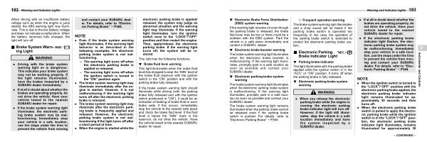 . When you release the electronic parking brake while the engine is running , the electronic parking brake indicator light will turn off . However , if the light still illuminates , stop the vehicle in a safe location immediately and have the system inspected by a SUBARU dealer . |