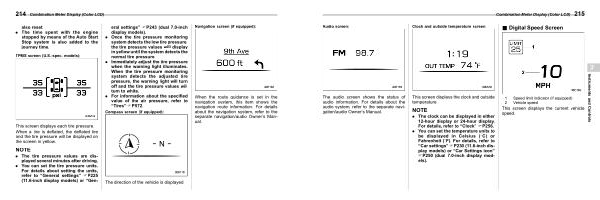 The audio screen shows the status of audio information . For details about the audio system , refer to the separate navigation / audio Owner ’ s Manual . |