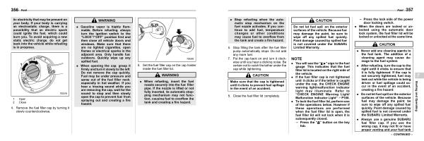 Do not let fuel spill on the exterior surfaces of the vehicle . Because fuel may damage the paint , be sure to wipe off any spilled fuel quickly . Paint damage caused by spilled fuel is not covered under the SUBARU Limited Warranty .