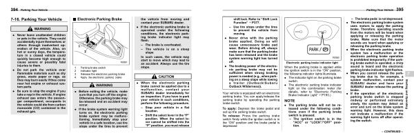 . The braking power of the electronic parking brake may not be sufficient when strong braking power is needed ( e . g ., when parking on a steep slope while towing a trailer ( Outback / Subaru Outback Wilderness )).
