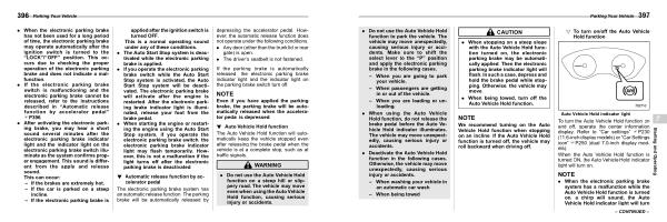 . When stopping on a steep slope with the Auto Vehicle Hold function turned on , the electronic parking brake may be automatically applied . Then the electronic parking brake indicator light will flash . In such a case , depress and hold the brake pedal while stopping . Otherwise , the vehicle may move .