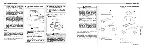 . For cargo carrying purposes , the roof rails must be used together with the SUBARU recommended roof crossbars and any appropriate carrying attachment that may be needed . The roof rails must never be used alone to carry cargo . Otherwise , damage to the roof or paint , or a dangerous road hazard due to loss of cargo could result .