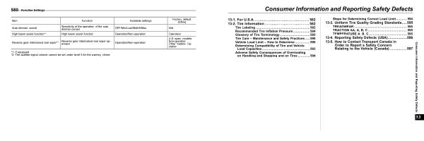 13-3 . Uniform Tire Quality Grading Standards ..... 595 TREADWEAR ..................................................... 595 TRACTION AA , A , B , C ....................................... 595 TEMPERATURE A , B , C ...................................... 595 13-4 . Reporting Safety Defects ( USA )................... 596