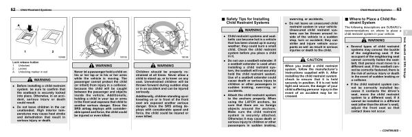 The following descriptions are SUBARU ’ s recommendations on where to place a child restraint system in your vehicle .