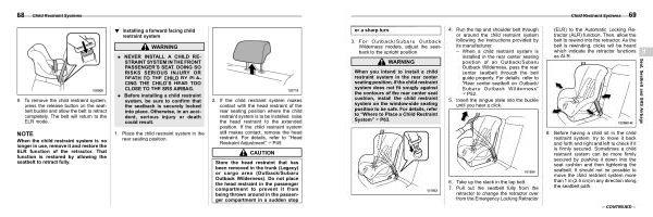 2 . If the child restraint system makes contact with the head restraint of the rear seating position where the child restraint system is to be installed , raise the head restraint to the extended position . If the child restraint system still makes contact , remove the head restraint . For details , refer to “ Head Restraint Adjustment ” FP45 .