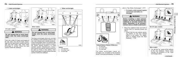 Two lower anchorages ( bars ) are provided for installing a child restraint system in the rear seat window-side seating positions . Lower anchorages ( bars ) for window-side seating positions may be used for a seat in the center seating position if a child restraint system manufacturer ’ s instructions permit and specify using anchors as far apart as those in this vehicle . Each lower anchorage is located where the seat cushion meets the seatback .