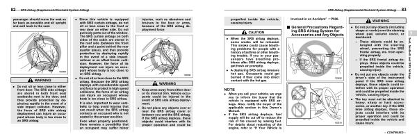 . Do not sit or lean close to the SRS airbag . Because the SRS airbag deploys with considerable speed and force to protect in high speed collisions , the force of an airbag can injure an occupant whose body is too close to SRS airbag .