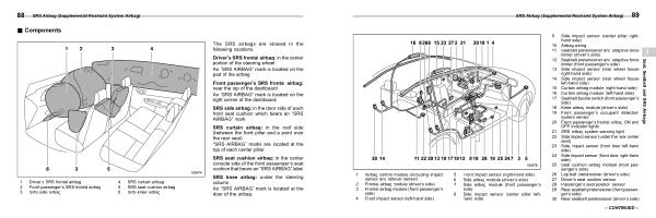 15 Curtain airbag module ( right-hand side ) 16 Curtain airbag module ( left-hand side ) 17 Seatbelt buckle switch ( front passenger ’ s side )
