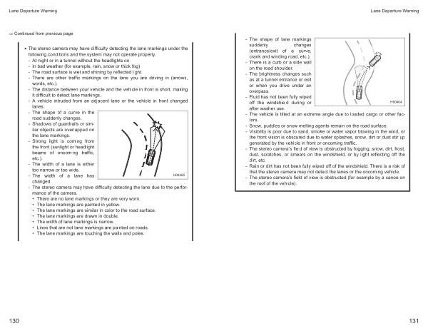 H00465 changed . - The stereo camera may have difficulty detecting the lane due to the performance of the camera .
