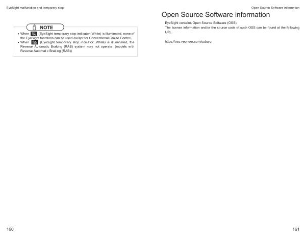 EyeSight contains Open Source Software ( OSS ). The license information and / or the source code of such OSS can be found at the following URL .