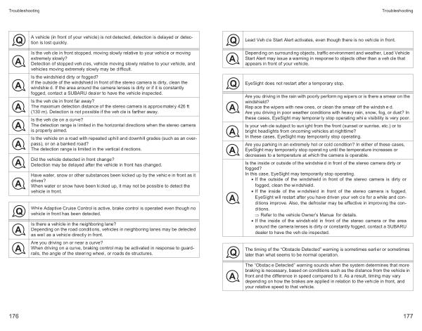Is the inside or outside of the windshield in front of the stereo camera dirty or fogged ? In this case , EyeSight may temporarily stop operating .