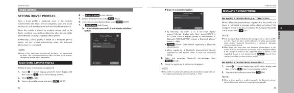 Once a driver profile is registered , some of the contents customized by the driver , such as navigation , radio , and sound settings , etc ., will be categorized and memorized for that driver .