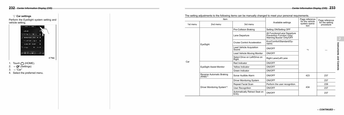 1. Touch( HOME). 2.?( Settings) 3.?“ Car” 4. Select the preferred menu.