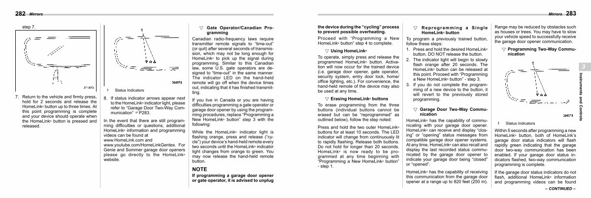 If the garage door status indicators do not flash, additional HomeLink ® information and programming videos can be found