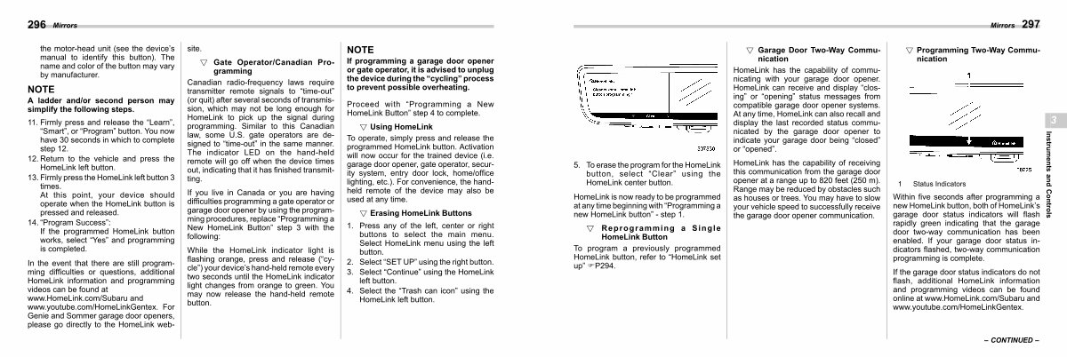 If the garage door status indicators do not flash, additional HomeLink information and programming videos can be found online at www. HomeLink. com / Subaru and www. youtube. com / HomeLinkGentex.