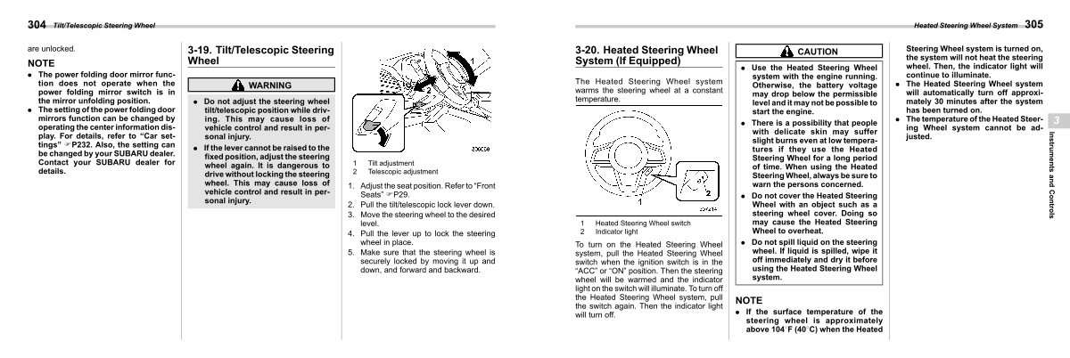. Do not adjust the steering wheel tilt / telescopic position while driving. This may cause loss of vehicle control and result in personal injury.