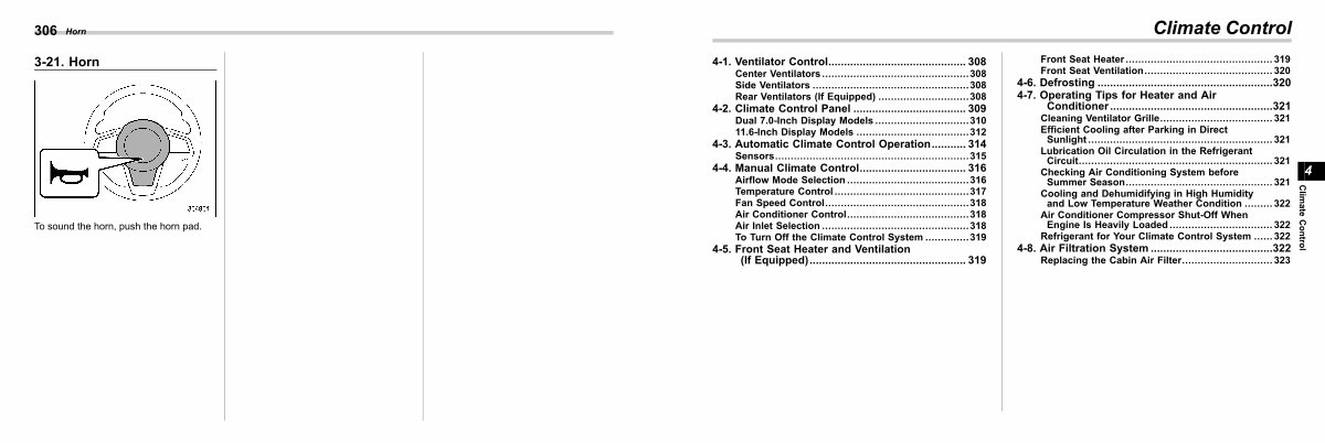 4-2. Climate Control Panel.................................... 309 Dual 7.0-Inch Display Models.............................. 310 11.6-Inch Display Models.................................... 312