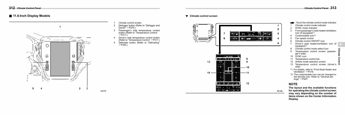 4 Driver’ s side temperature control button( Refer to“ Temperature Control” FP317.)