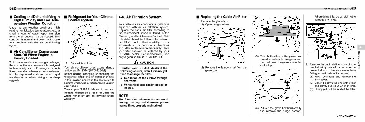 2. Remove the cabin air filter according to the following procedure in order to prevent dust on the air cleaner from falling to the inside of its housing.( 1) Pinch both tabs and remove the filter cover.( 2) Gently tilt down the end of the filter and slowly pull it out 0.4 in( 1 cm).( 3) Slowly pull out the rest of the filter. |