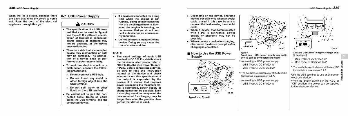 *: The available electrical power of the two USB terminals is a maximum of 5.4 A.