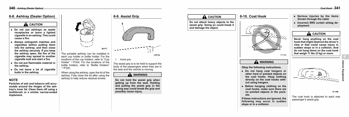 Never hang anything on the coat hook that might obstruct the driver’ s view or that could cause injury in sudden stops or in a collision. And do not hang items on the coat hook that weigh 11 lbs( 5 kg) or more.