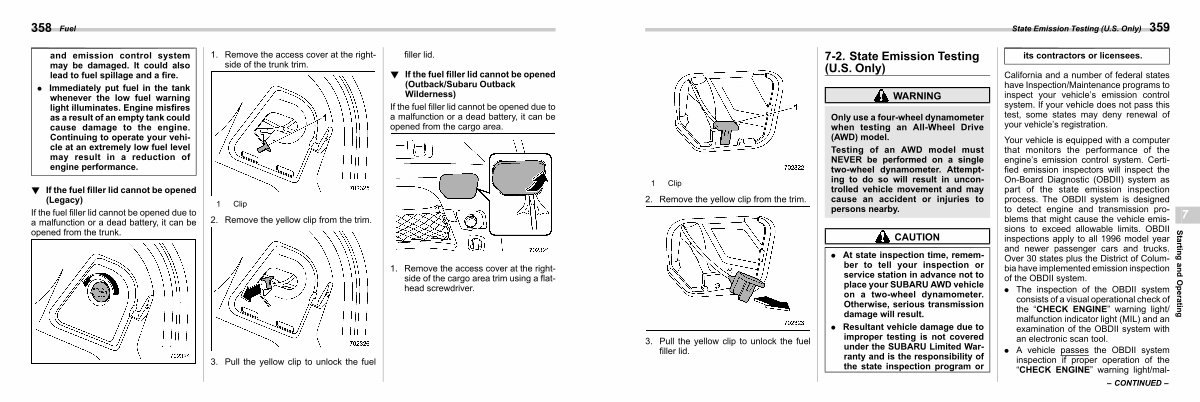 . Resultant vehicle damage due to improper testing is not covered under the SUBARU Limited Warranty and is the responsibility of the state inspection program or