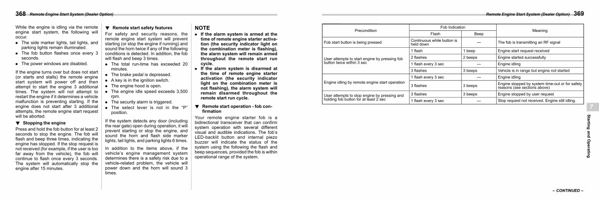 . If the alarm system is armed at the time of remote engine starter activation( the security indicator light on the combination meter is flashing), the alarm system will remain armed throughout the remote start run cycle.