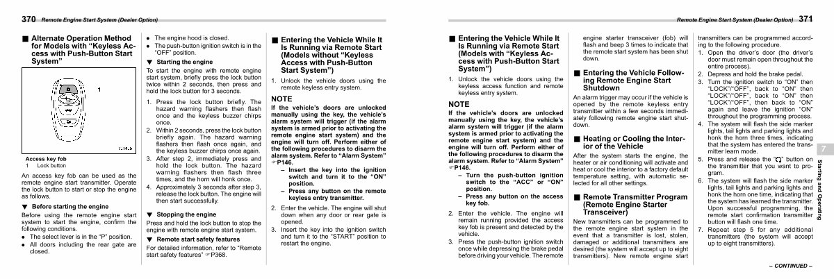 & Entering the Vehicle While It Is Running via Remote Start( Models with“ Keyless Access with Push-Button Start System”) s07az24