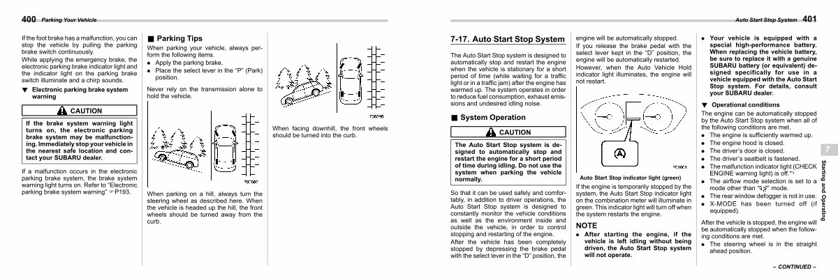 The Auto Start Stop system is designed to automatically stop and restart the engine for a short period of time during idling. Do not use the system when parking the vehicle normally.