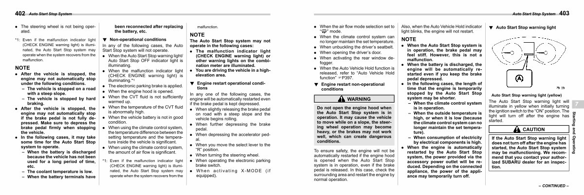 * 1: Even if the malfunction indicator light( CHECK ENGINE warning light) is illuminated, the Auto Start Stop system may operate when the system recovers from the malfunction.