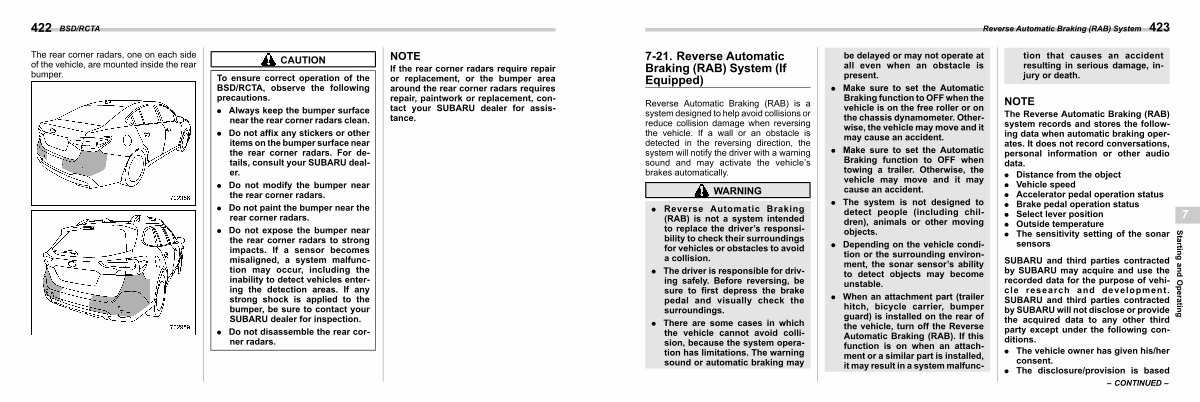 The Reverse Automatic Braking( RAB) system records and stores the following data when automatic braking operates. It does not record conversations, personal information or other audio data.