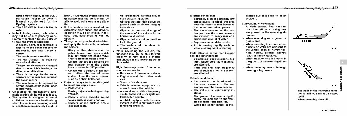 . If the vehicle is reversed at an extremely slow speed, the driver’ s operation may be prioritized. In this case, automatic braking will not operate.